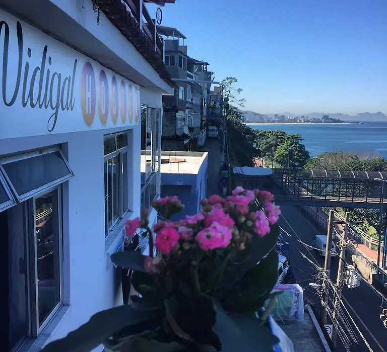 Część pokoi w Vidigal Hostel Bar oferuje gościom dostęp do szybkiego internetu, kontroli parametrów klimatycznych i balkonu. Z pokoi roztacza się widok na morze.